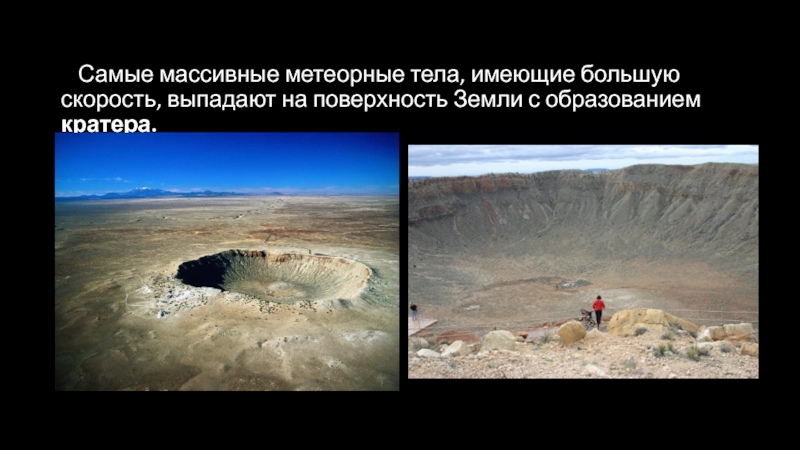 Слайд 15Самые массивные метеорные тела, имеющие большую скорость, выпадают на поверхность