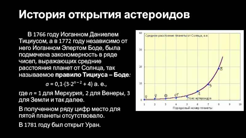 В 1766 году Иоганном Даниелем Тициусом, а в 1772 году