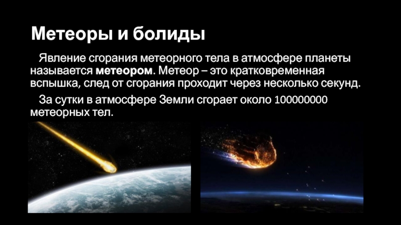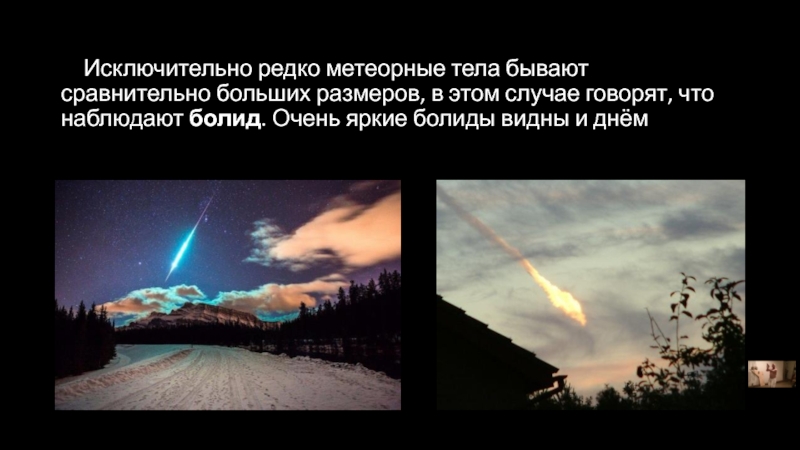 Слайд 13Исключительно редко метеорные тела бывают сравнительно больших размеров, в этом