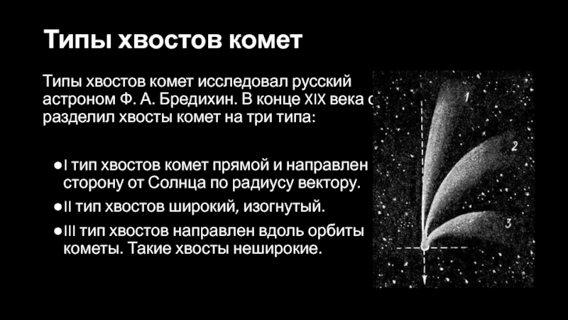 Бредихин. В конце XIX века от разделил хвосты комет на