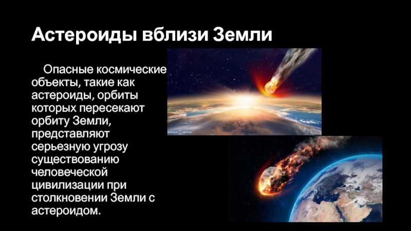 пересекают орбиту Земли, представляют серьезную угрозу существованию человеческой цивилизации при