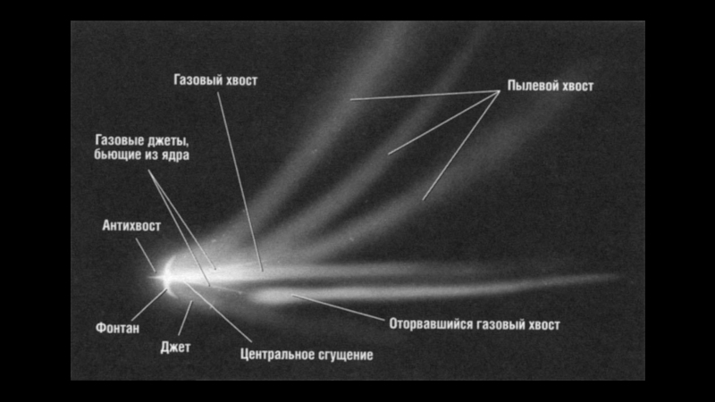 I тип хвостов комет прямой и направлен в сторону от Солнца по радиусу вектору.