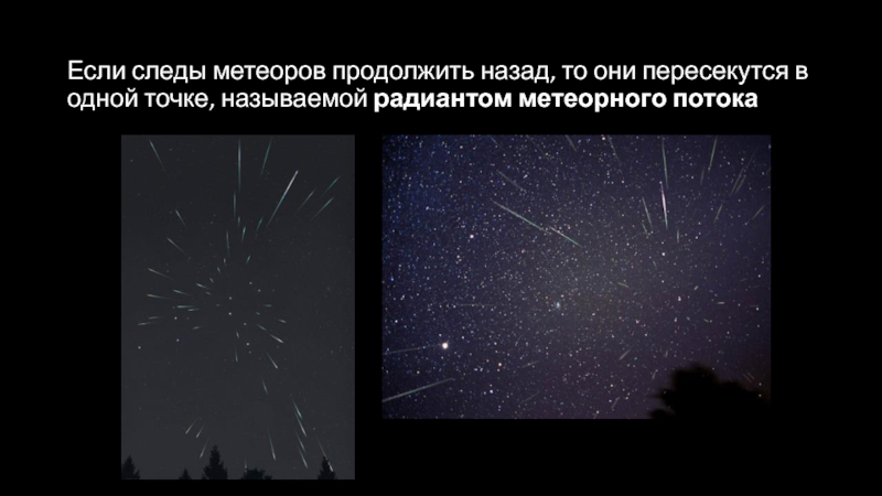 Слайд 12Если следы метеоров продолжить назад, то они пересекутся в одной