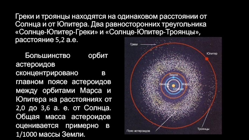 Слайд 4Греки и троянцы находятся на одинаковом расстоянии от Солнца и