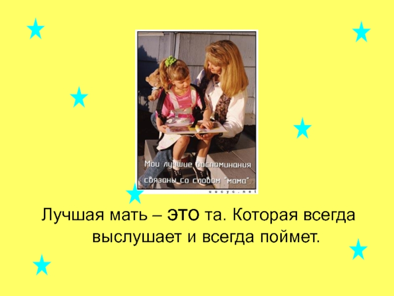 Слайд 10Лучшая мать – это та. Которая всегда выслушает и всегда