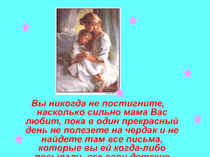 Слайд 4Вы никогда не постигните, насколько сильно мама Вас любит, пока