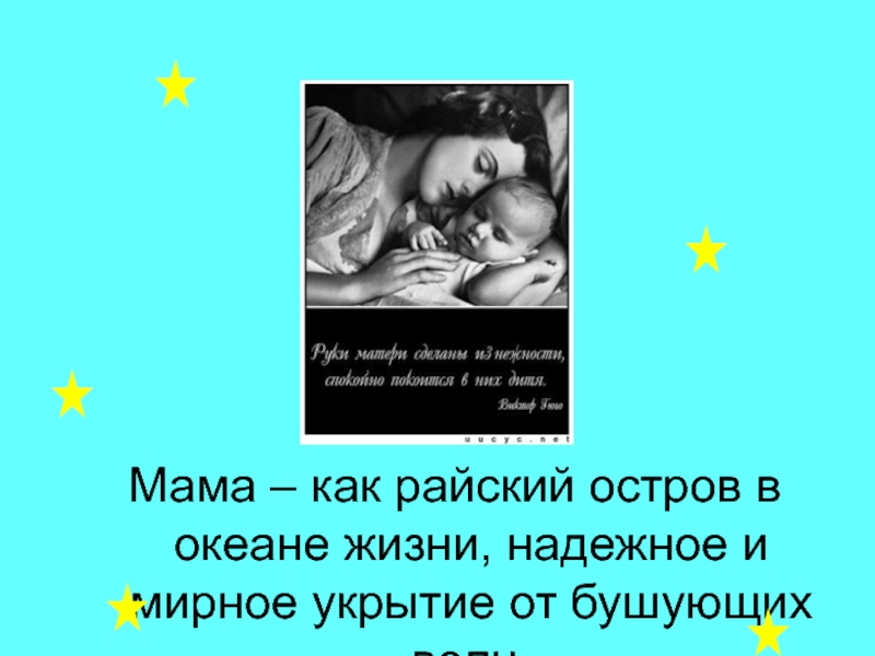 Слайд 14Мама – как райский остров в океане жизни, надежное и