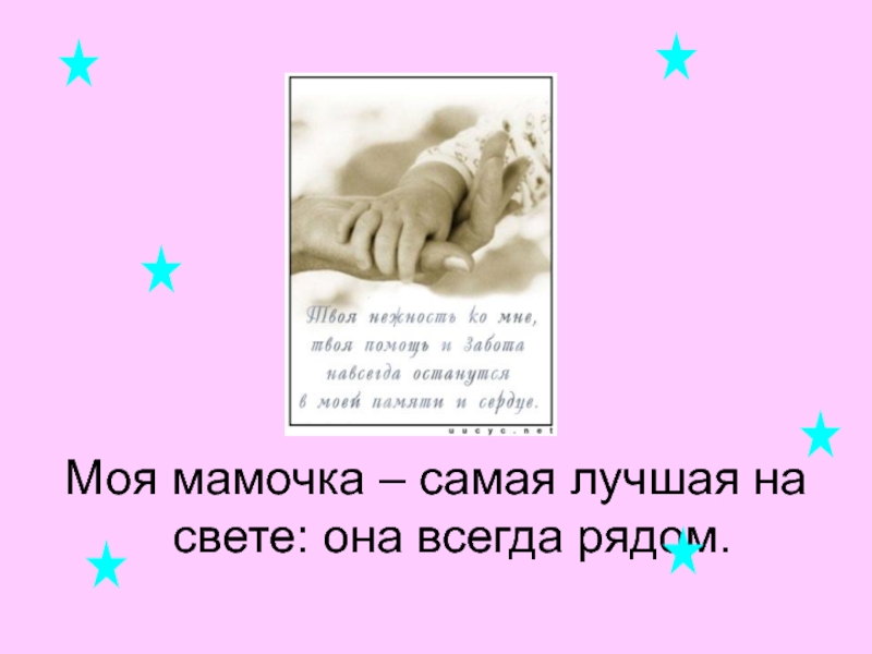 Слайд 13Моя мамочка – самая лучшая на свете: она всегда рядом.