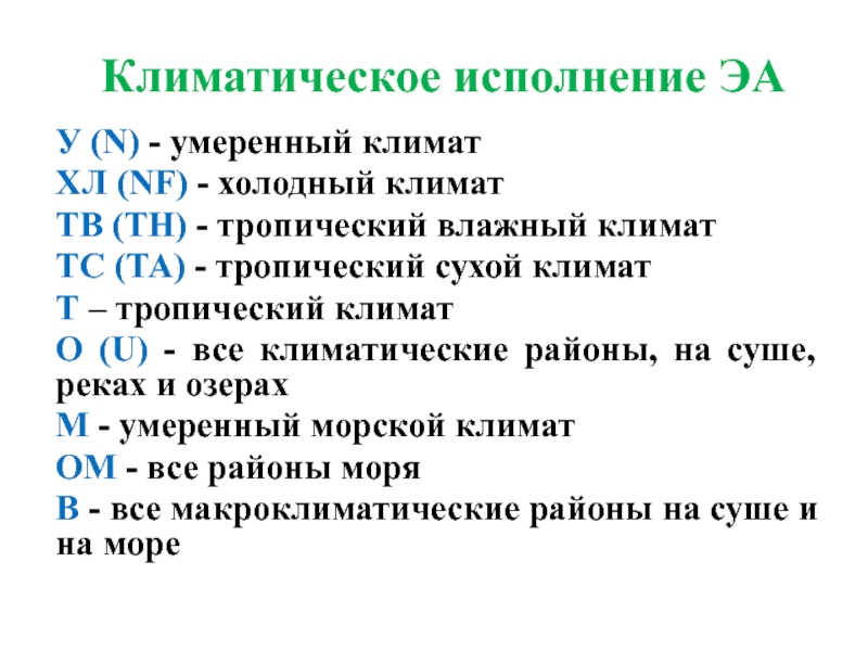 Слайд 23Климатическое исполнение ЭА