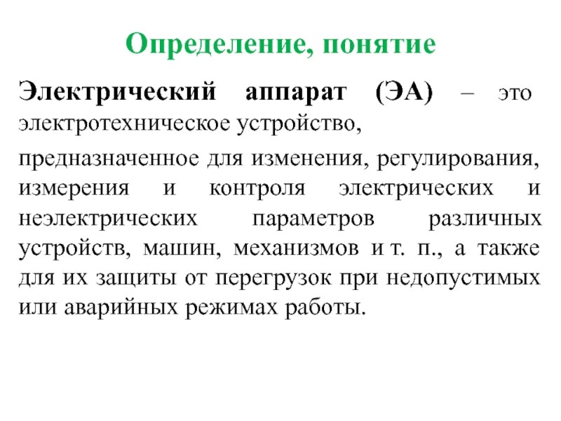 Электрический аппарат (ЭА) – это электротехническое устройство,