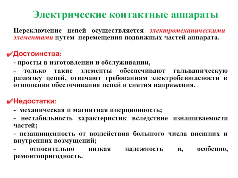 Слайд 25Электрические контактные аппараты