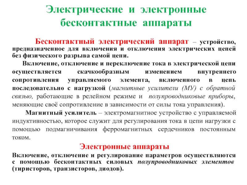 Слайд 26Электрические и электронные бесконтактные аппараты