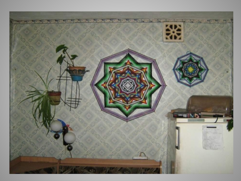 Мандала-этоСложный геометрический узорСимволизирующий гармонию вселенной, объединение внешнего космоса и внутреннего мира человека.Представляет собой центр мироздания, несёт позитивную