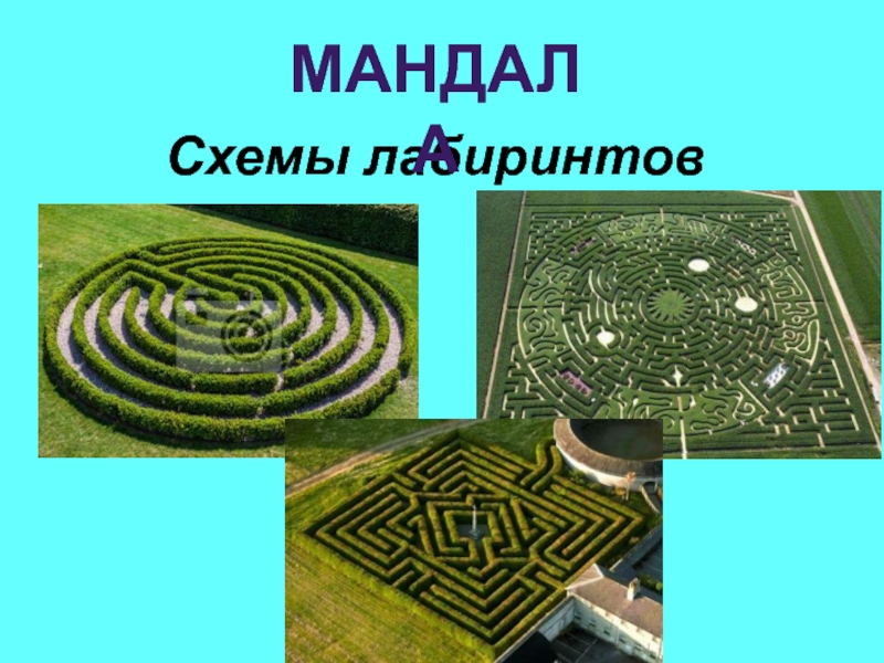 Слайд 9Существуют разные формы мандал: круглые, квадратные, лабиринты, многоугольники.
