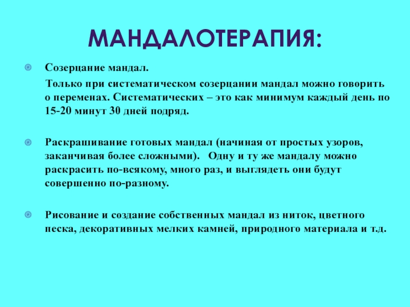 Только при систематическом созерцании мандал можно говорить о переменах.