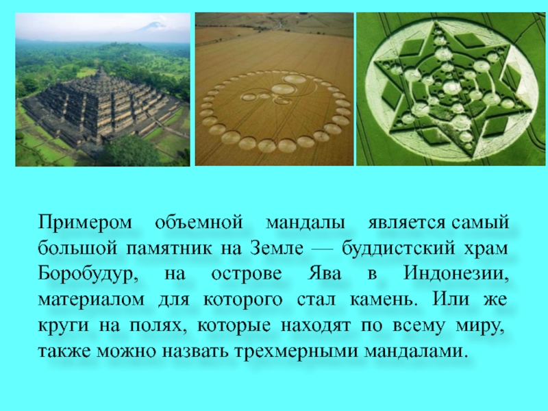 Слайд 10Примером объемной мандалы является самый большой памятник на Земле — буддистский