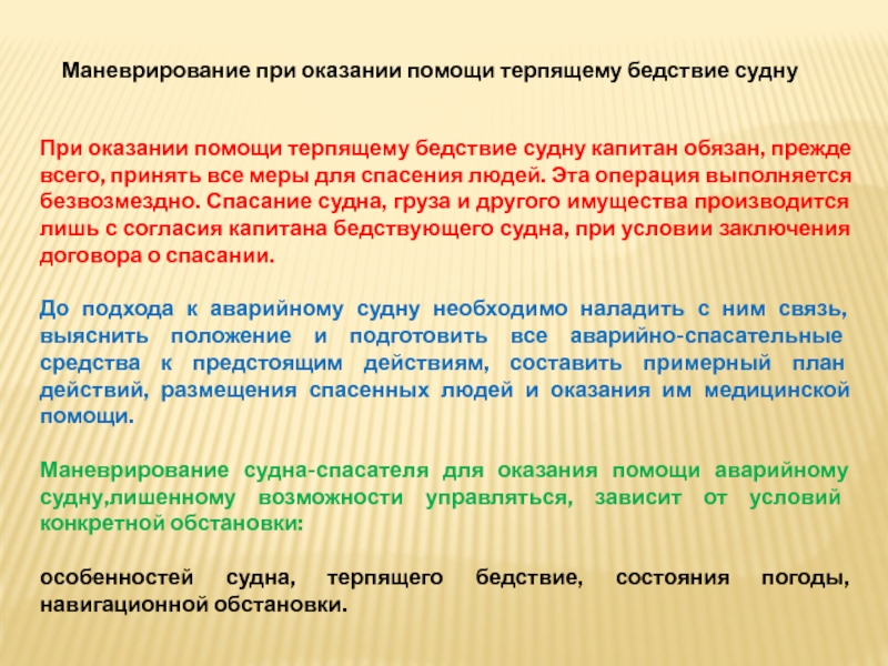 Слайд 11Маневрирование при оказании помощи терпящему бедствие судну