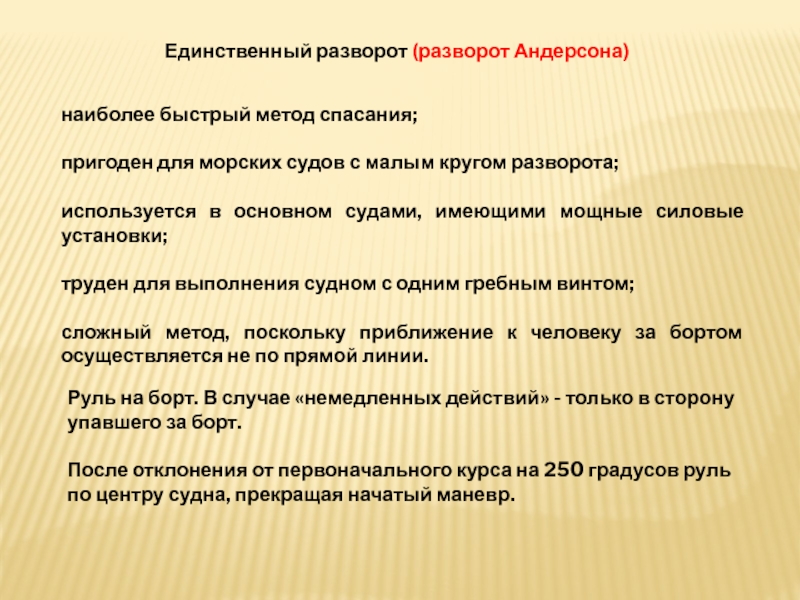 сложный метод, поскольку приближение к человеку за бортом осуществляется не по прямой линии.