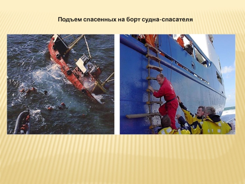 Слайд 10Подъем спасенных на борт судна-спасателя