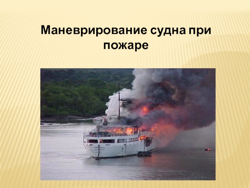 навигационная обстановка, расположить горящее судно под углом к ветру так,