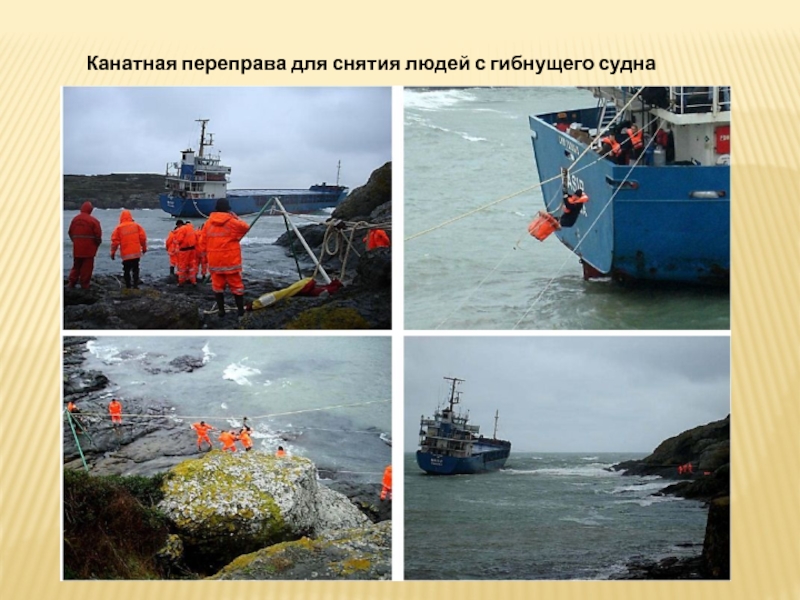 Слайд 9Канатная переправа для снятия людей с гибнущего судна