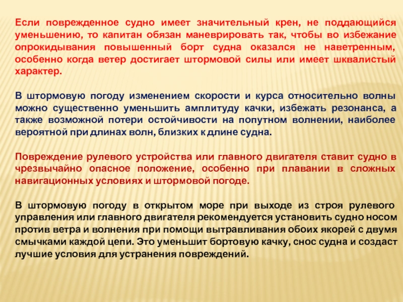 капитан обязан маневрировать так, чтобы во избежание опрокидывания повышенный борт