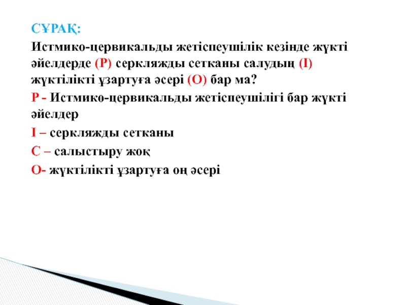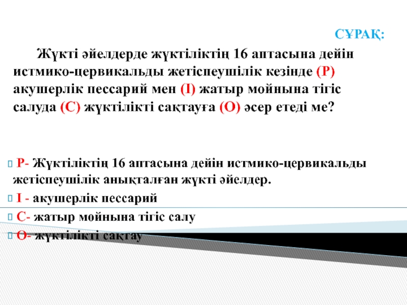 Р- Жүктіліктің 16 аптасына дейін истмико-цервикальды жетіспеушілік анықталған жүкті әйелдер.