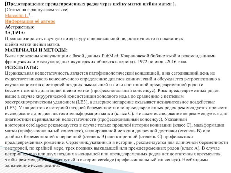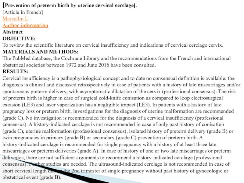 Слайд 11[Prevention of preterm birth by uterine cervical cerclage].