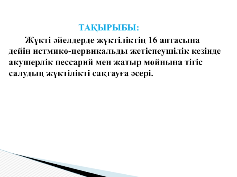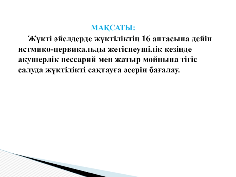 Жүкті әйелдерде жүктіліктің 16 аптасына дейін истмико-цервикальды жетіспеушілік кезінде акушерлік пессарий мен жатыр мойнына тігіс салуда жүктілікті сақтауға әсерін бағалау.