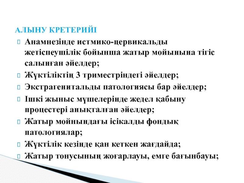 Истмико – цервикальдя жетіспеушілік бойынша түсік қаупі бар әйелдер;