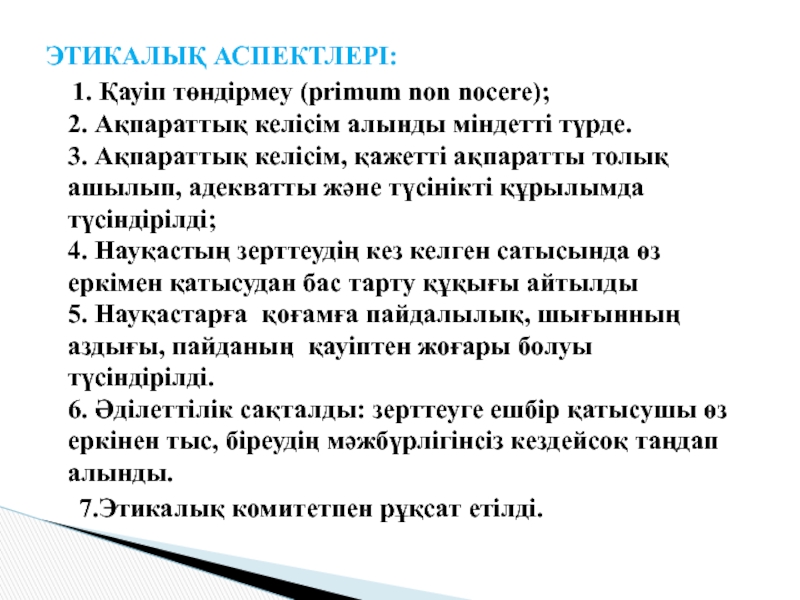 Слайд 10 ЭТИКАЛЫҚ АСПЕКТЛЕРІ: