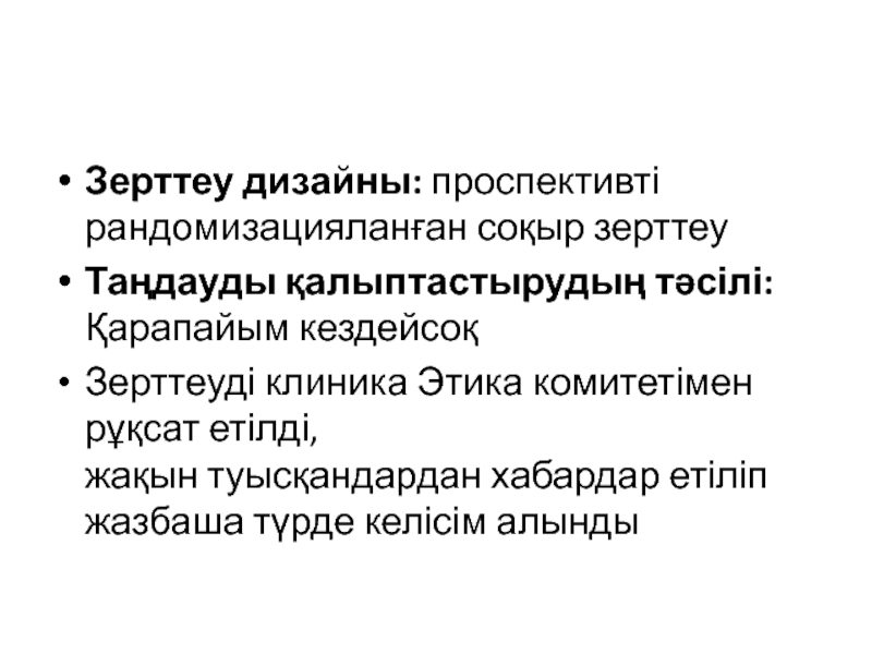 Слайд 15Зерттеу дизайны: проспективті рандомизацияланған соқыр зерттеу