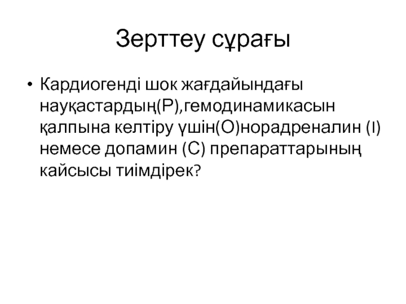 Кардиогенді шок жағдайындағы науқастардың(Р),гемодинамикасын қалпына келтіру үшін(О)норадреналин (I) немесе