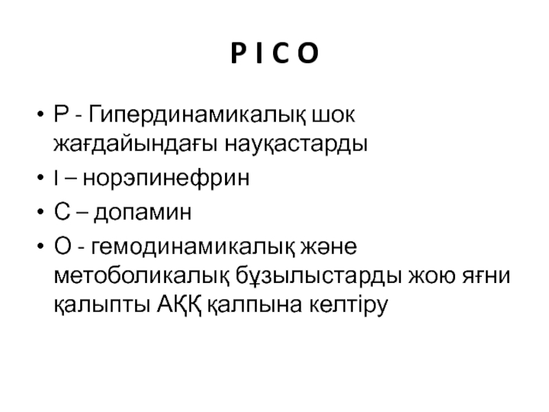 Р - Гипердинамикалық шок жағдайындағы науқастарды