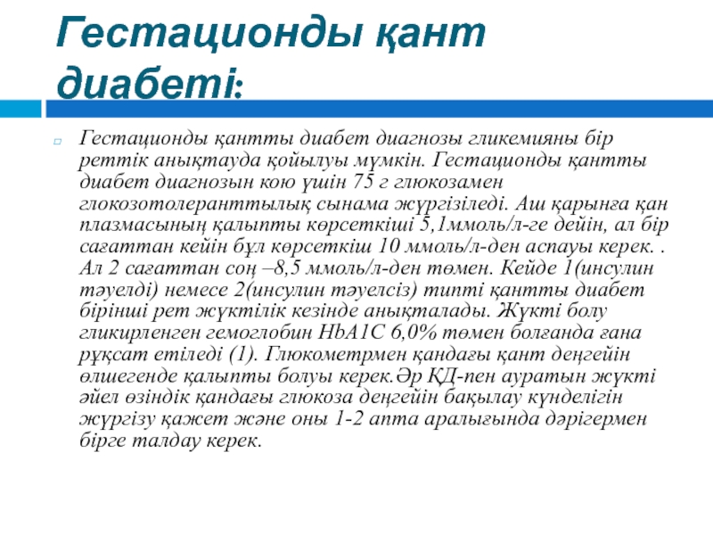 қойылуы мүмкін. Гестационды қантты диабет диагнозын кою үшін 75 г