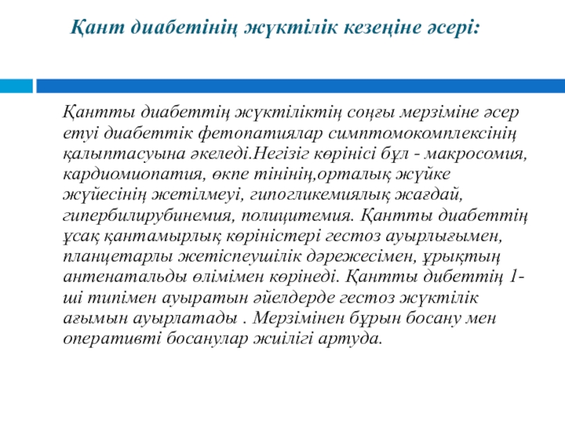 Слайд 7 Қант диабетінің жүктілік кезеңіне әсері: