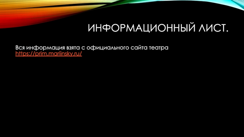 Информационный лист.Вся информация взята с официального сайта театра https://prim.mariinsky.ru/