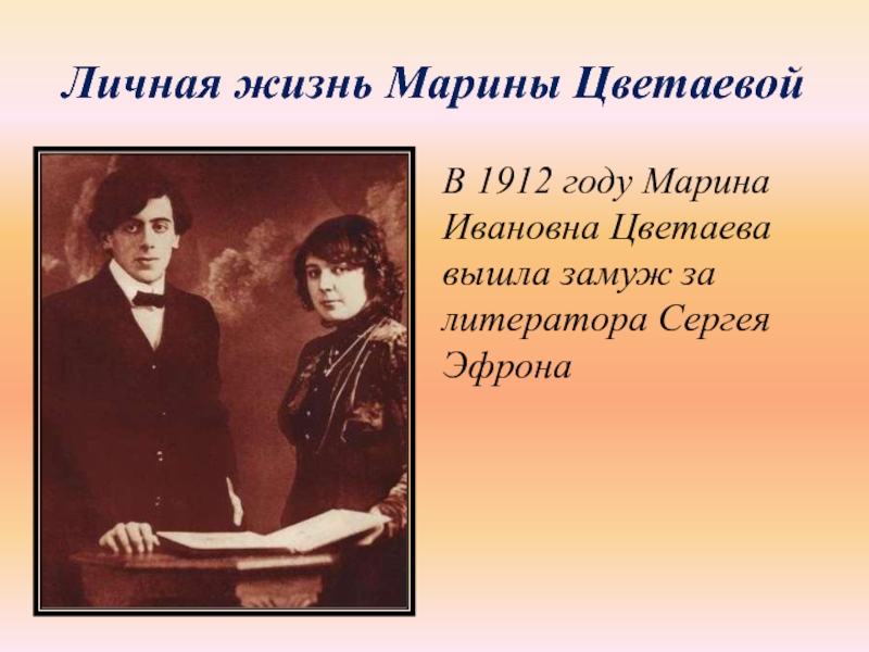 Личная жизнь Марины Цветаевой В 1912 году Марина Ивановна Цветаева вышла замуж за литератора Сергея Эфрона