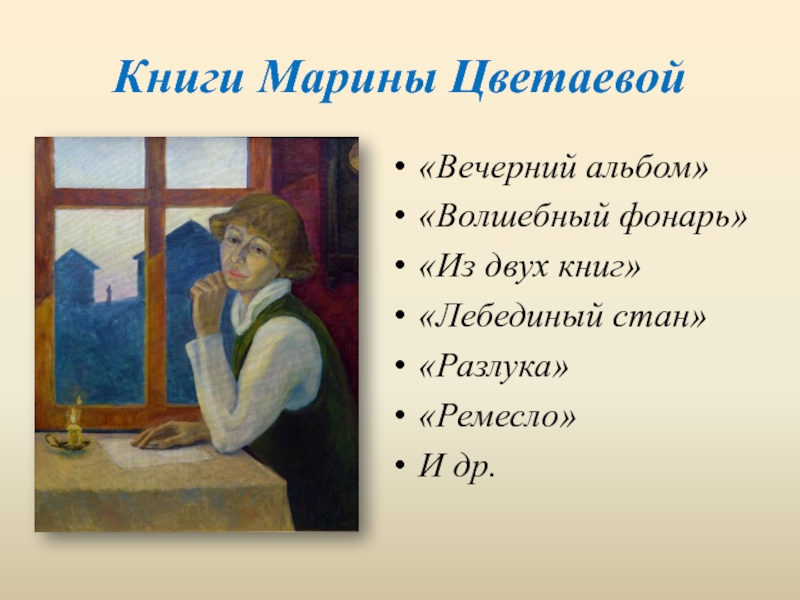 Книги Марины Цветаевой «Вечерний альбом»«Волшебный фонарь»«Из двух книг»«Лебединый стан»«Разлука»«Ремесло»И др.