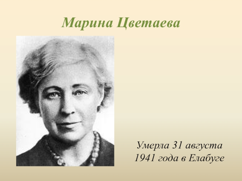 Марина Цветаева Умерла 31 августа 1941 года в Елабуге