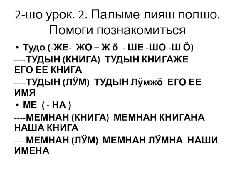 Слайд 102-шо урок. 2. Палыме лияш полшо.