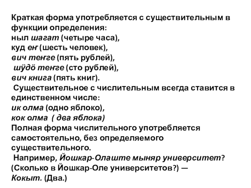 Полная форма числительного употребляется самостоятельно, без определяемого существительного.