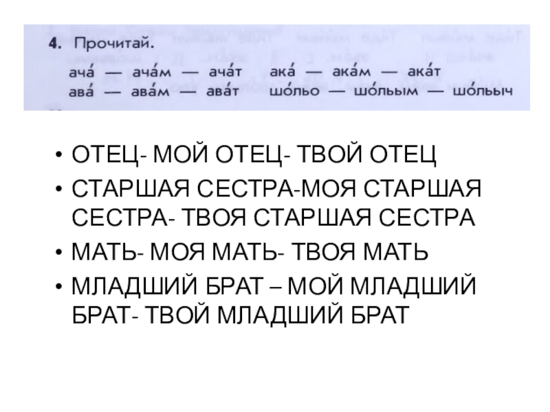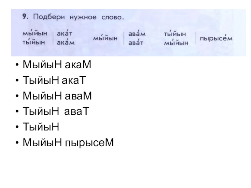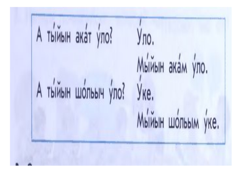 Слайд 55ТыйыН акаТ уло? У тебя есть старшая сестра? МыйыН акаМ
