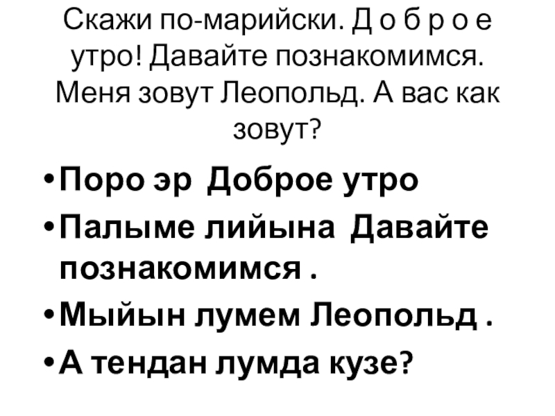 Слайд 17Скажи по-марийски. Д о б р о е утро! Давайте