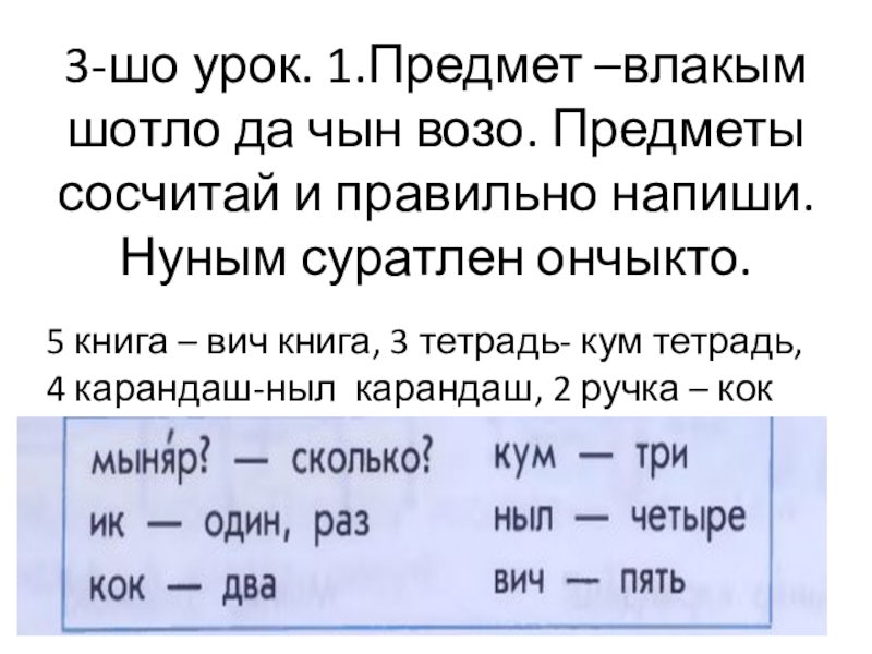 Слайд 273-шо урок. 1.Предмет –влакым шотло да чын возо. Предметы сосчитай