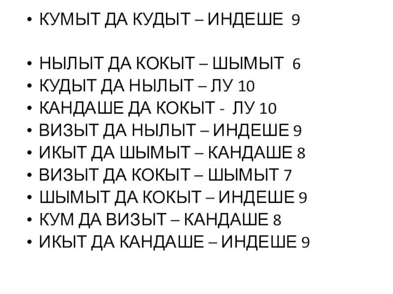 Слайд 34КУМЫТ ДА КУДЫТ – ИНДЕШЕ 9