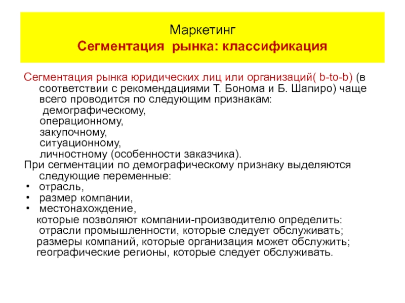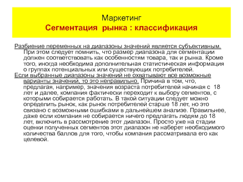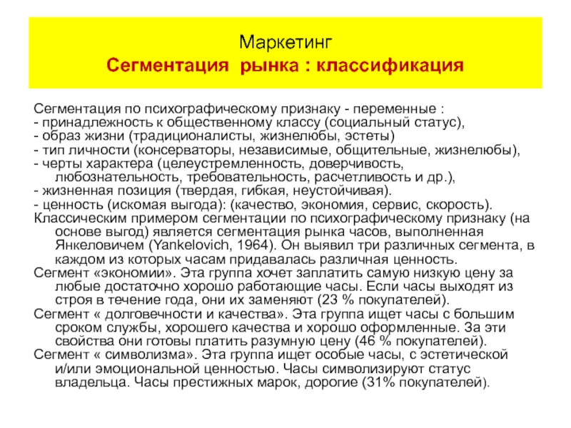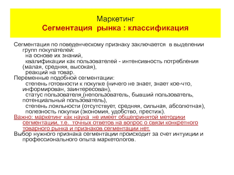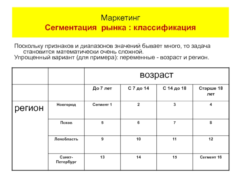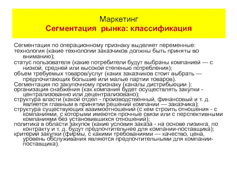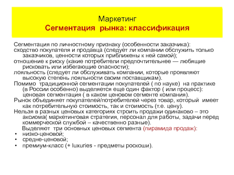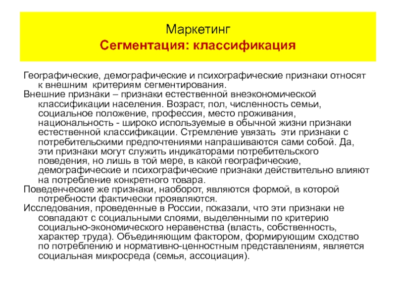 Маркетинг Сегментация: классификация