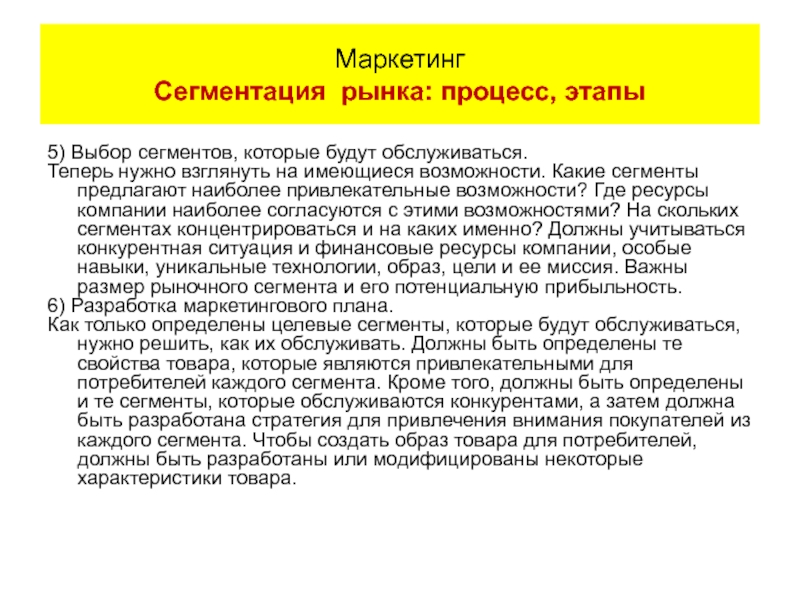 Слайд 375) Выбор сегментов, которые будут обслуживаться.