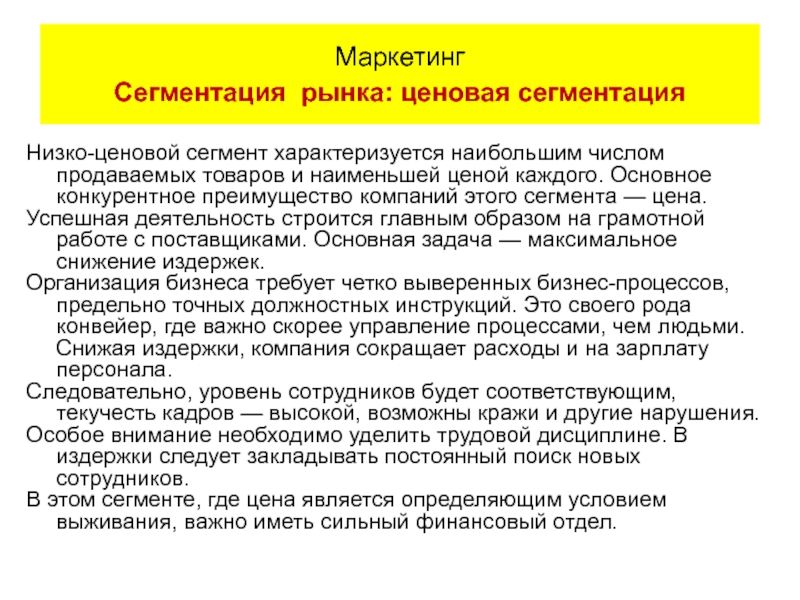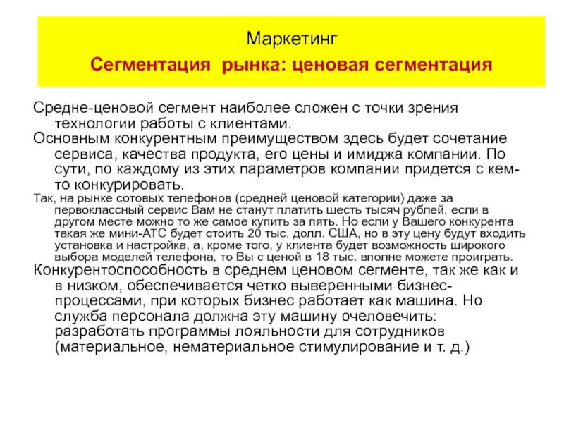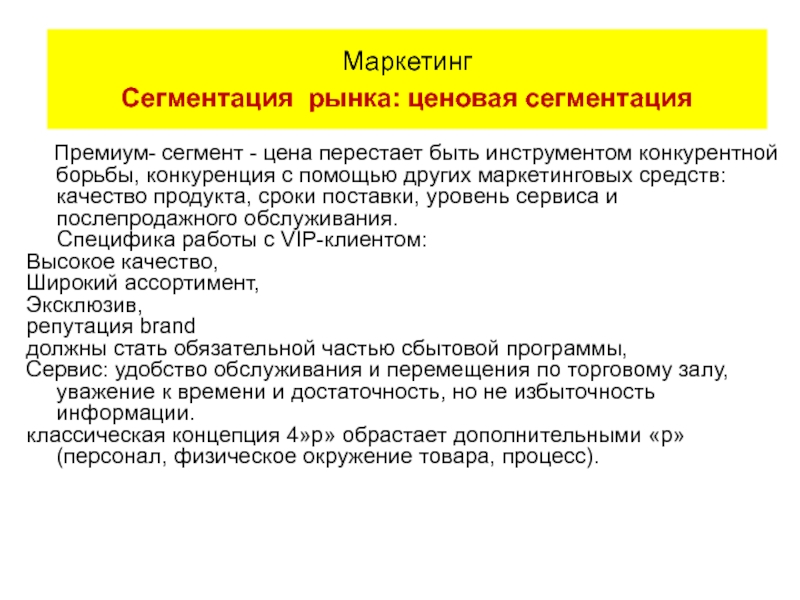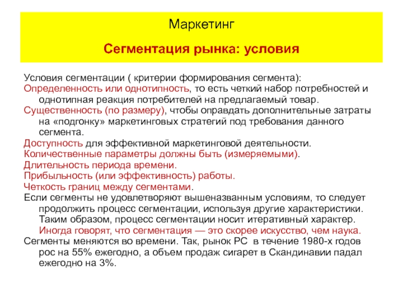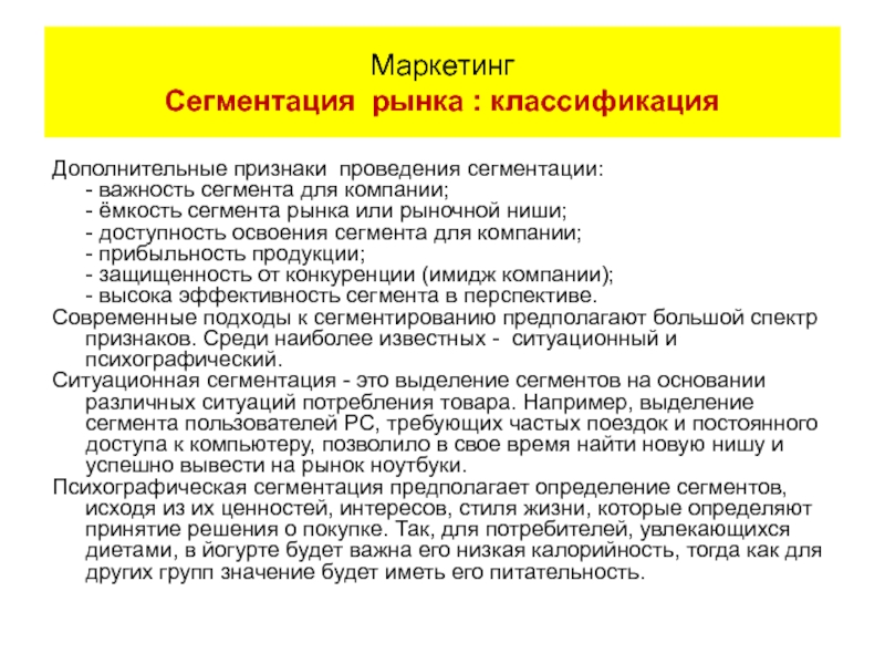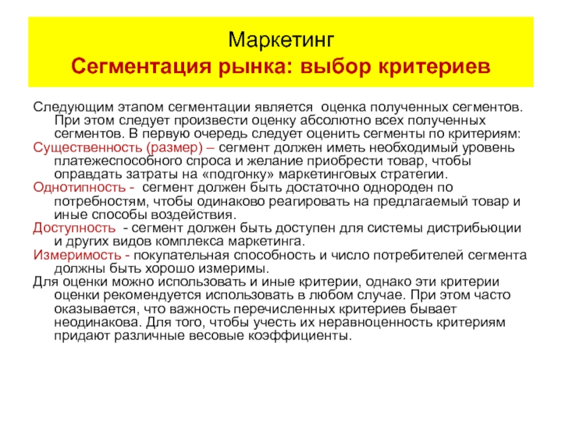 Маркетинг Сегментация рынка: выбор критериев