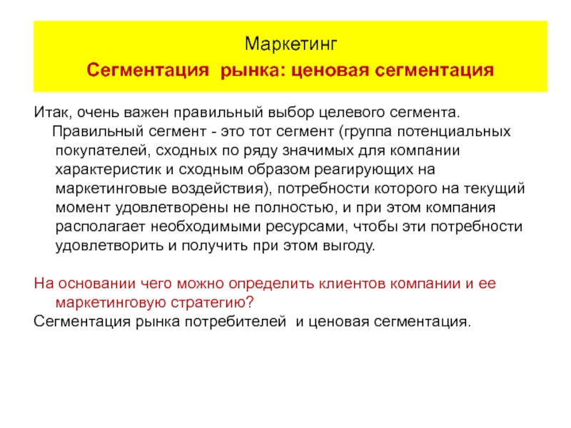 Маркетинг - целевой рынок + сегмент
